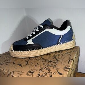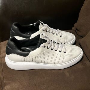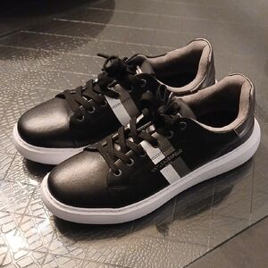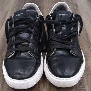 Pre-LOved Vintage Karl Lagerfeld Black Textile Leather Men's Shoes Comfort Sneakers US 8 (size compared with US 9-9.5 ).