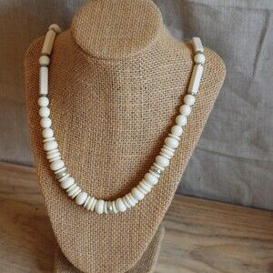 Pre-Loved Vintage White and Silvertone Beaded Necklace