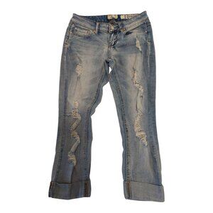 1 Pair Indigo Rein Ripped Style Cropped Blue Jeans