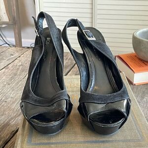 Pre-Owed BCBGEneration Womens Black Open Toe Slingback Upper Leather Heels Sz 8