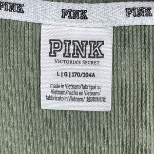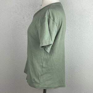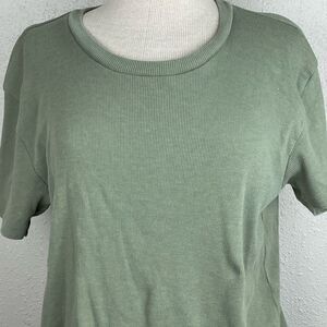 Pre-Owed Adorable Pink Womens Olive Green Ribbed Short Sleeve Top Size L. It measures 19 inches armpit to armpit and 20 inches in length.