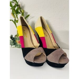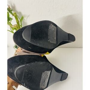 Pre-Owned Alba Color Black Yellow 5" High Heel Open Toe Wedges SZ 6 Disco