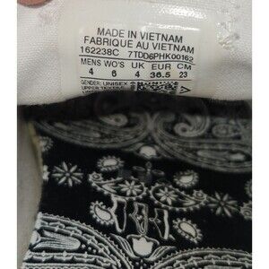 * Size 6 women's Rare limited edition shoes feature the iconic Miley Cyrus smiley face sporting her initials: MC, along with her double bun hairstyle. They have black bandana print on the inside soles with one of them sporting the Miley-smiley.