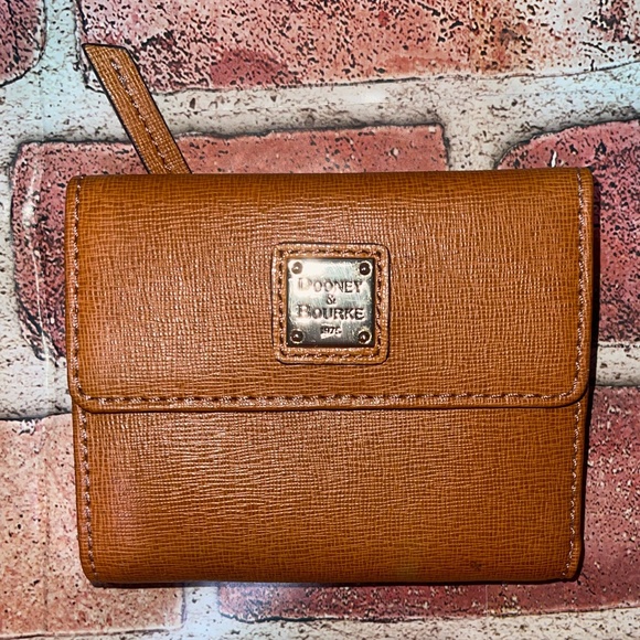 Pre-Owned Dooney & Bourke Pebble Grain Small Flap Wallet Leather Card Brown Orange Designer Cute Chic Preppy Minimalist Casual Practical (OBO)