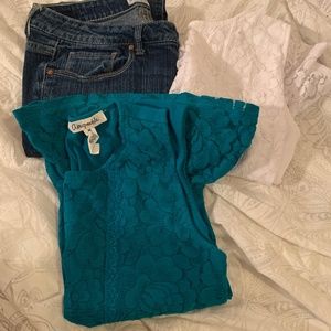 Pre-Owned Early 2000s Lot of AEROPOSTALE Jeans (sz 5/6) and 2 Lace Tops (Sz M)