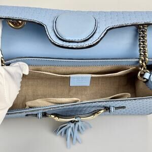 Pre-Owned Gucci GG Microguccissima leather Medium Emily Chain Shoulder Bag in Baby Blue