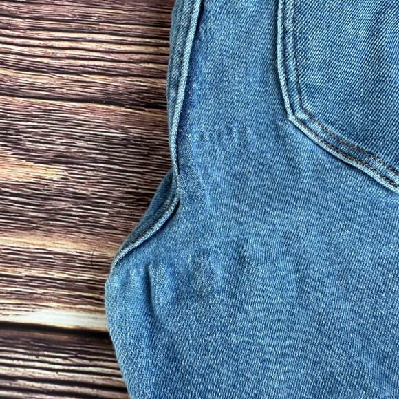Couple flaws in denim shown in pics - Crotch and back pocket area.