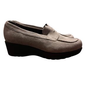 Pre-Owned Munro Katie Gray Suede Platform Penny Loafers Size 7.5 - Excellent Con