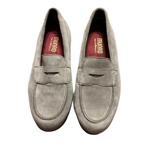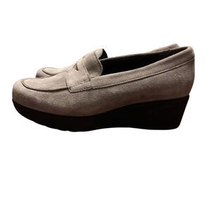 Munro, Katie, Gray Suede, Platform Loafers, Penny Loafers, Womens Size 7.5, Pre-Owned, Excellent Condition, Designer Shoes, Casual Footwear, Professional Style, Suede Shoes