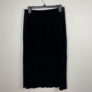 Pre-Owned Notations y2k 90s Womens Black Velvet Stretch Midi Side Slit Size Petite L. It measures 13 1/2 inches at the waist and 31 inches in length.
