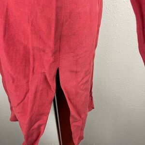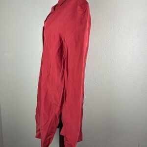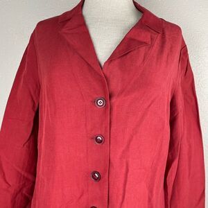Pre-Owned Beautiful Rena Rowan Womens Red Button Down Long Sleeve Silk and Linen Collard Jacket/Top Size 10. It measures 19 inches armpit to armpit and 35 inches in length.