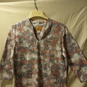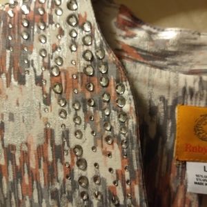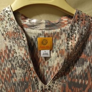 Pink and gray rhinestone v-neck collar blouse