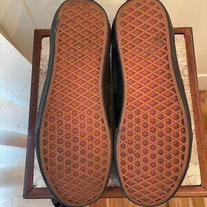 These Pre-Owned Black and Gray Suede Vans are a men’s sz 6.5 and would fit a woman’s sz 8. In very good pre owned condition, with minimal wear, no smells, rips or tears. Perfect for any casual look.