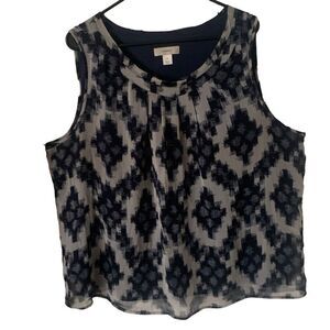 Pre Owned Women’s CJ Banks Sleeveless Blouse Geometric Blue White Sz XXL
