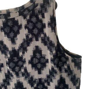 Elevate your fashion game with this pre-owned women's CJ Banks sleeveless blouse in a contemporary blue and white geometric pattern.
