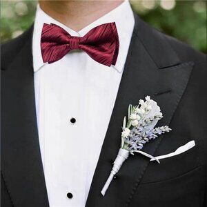 【Bow Tie Sets】1 Pre-Tied Bow Tie, 1 Matching Lapel Pin, 1 Pocket Square, 2 Cufflinks and 1 Gift Box; Men's silk jacquard bowtie, brooch, handkerchief and cuff links are all made of the same fabric to solve matching problems; Make men's simple suits or tuxedos more sophisticated