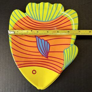 Precidio Tropical Fish Melamine Plates Set of 3 Orange/Green/Yellow/Blue Ocean Sea Marine Life