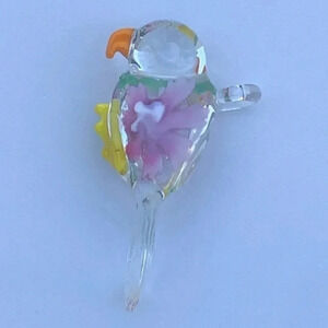 Precious Clear Murano Glass Bird Parrot Parakeet Necklace Pendant NWT