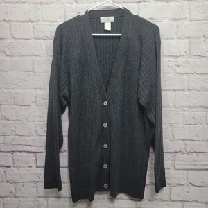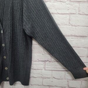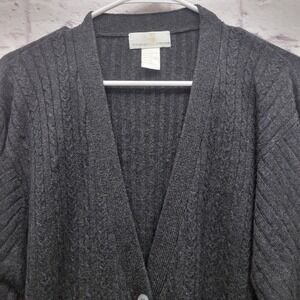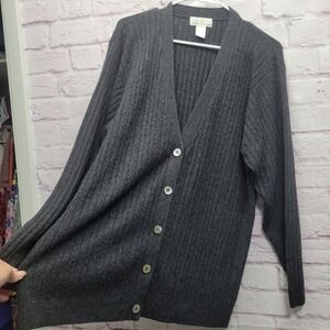 Precious Fibers Cashmere Silk Cardigan Sweater Mens L Charcoal Gray V-Neck Cable