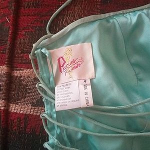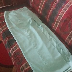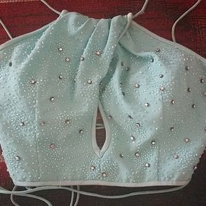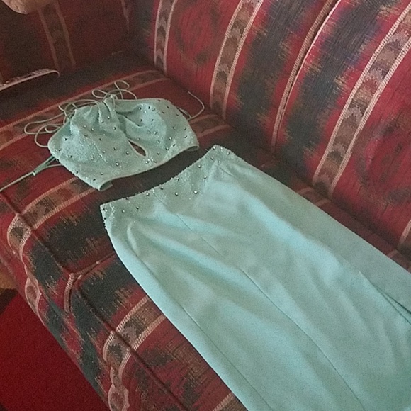 Beautiful 2 piece prom dress. Halter top with tie back. Long bottom half with a thigh split.