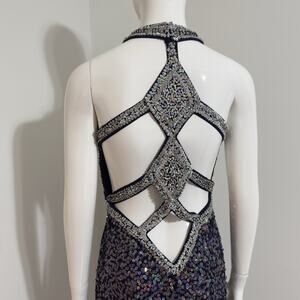 Precious Formals Blue Sequin Maxi Dress Women’s Size 2 Elegant Luxury Night