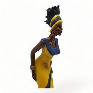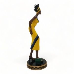 Precious Home Collection Figurine African Woman Yellow Dressed Sculpture