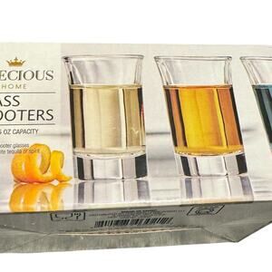Add a touch of elegance to your home bar with this set of six glass shooters! Each cup has a 45 ML / 1.5 OZ capacity, perfect for serving your favorite spirits or creating fun cocktails.