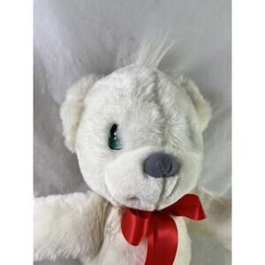 This Precious Moments 13" plush white bear wearing a red bow is bright and clean. Sweet cuddly gift or addition to your own bear or Precious Moments collection.