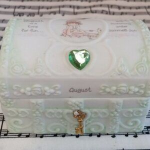 Precious Moments 1995 August Treasure Chest Trinket Box Enesco Peridot