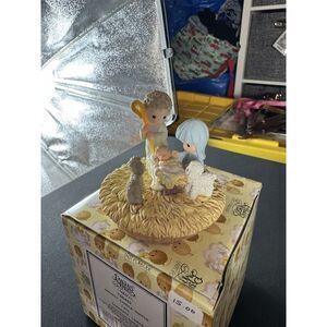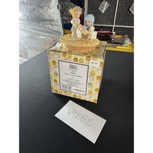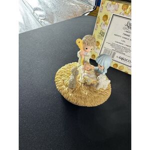 This is a Precious Moments Nativity Candle Topper from the Precious Moments collection, model #758442. It features a design inspired by Precious Moments characters and is meant to be placed on top of a candle for decorative purposes.