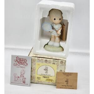 Precious Moments Figurine Serving The Lord 1985 Tennis Vintage 100293 W/Box Tags