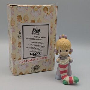 Precious Moments Girl Holding Stocking Figurine, 1995, Vintage