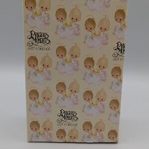 Charming Precious Moments figurine #169951 featuring a girl holding a red and white stocking. Dated 1995, this vintage piece is in good condition. Comes with original box, which shows wear due to age. There is some light writing on the underside of the foot.