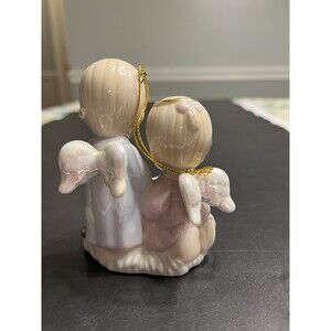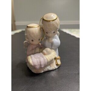 The Precious Moments HOLY FAMILY porcelain Nativity ornament Figurine is a vintage collectible from 1997. This multicolor ornament features the holy family in a Nativity scene, perfect for Christmas decor. Made of porcelain and part of the Precious Moments collection, this ornament captures a timeless theme and makes for a special addition to any holiday ornament set.