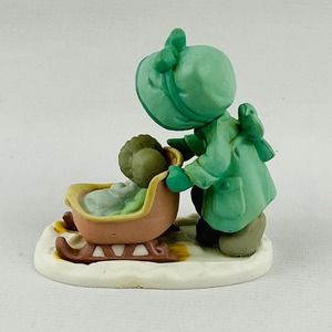 Precious Moments January Miniature Monthly Figurine Girl Sled 1989 #573302