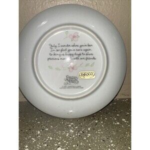 Capture the essence of a cherished moment with this delightful Precious Moments July plate. A sweet illustration of a boy and his playful puppy, rendered in soft, endearing colors, graces the front of this collectible plate. The gold trim adds a touch of elegance, making it a standout piece for display. On the back, a heartfelt inscription complements the image, evoking feelings of nostalgia and warmth. Perfect for adding a touch of whimsy to a child's room, celebrating a July birthday, or gifting to a Precious Moments collector.