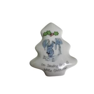Offered here is a lot of three precious moments collectibles. 2 thimbles “Perfect Grandma” & “Love Covers All” from 1984, and a 1990 “I’m Sending You A White Christmas” Christmas tree shape trinket box. All three are in excellent condition. 4583.