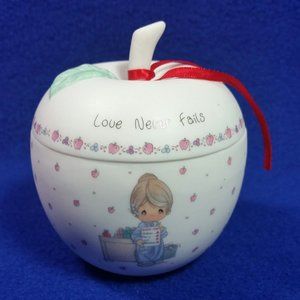 Vintage Precious Moments "Love Never Fails" Apple Trinket Box. Pre-Owned. No Box.