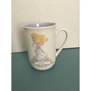 This is a Precious Moments mug from 1989 featuring the name "Mary." It is made of ceramic and porcelain, suitable for both hot and cold beverages. The set includes a cup with a white color scheme. This collectible mug is an original piece and would make a charming addition to any kitchen or home decor.
