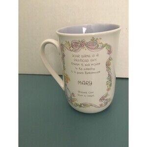 1989 PRECIOUS MOMENTS PERSONALIZED NAME CERAMIC CUP "MARY".CUP IN VERY GOOD CONDITION NO CRACKS,CHIPS OR STAINS DOES NOT LOOK USED.4"H X 2 3/4" DIAMETER.PLEASE FEEL FREE TO ASK QUESTIONS.