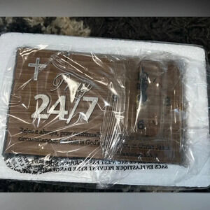 Inscribed with Thessalonians 5:16-18, it features a rustic, wooden look