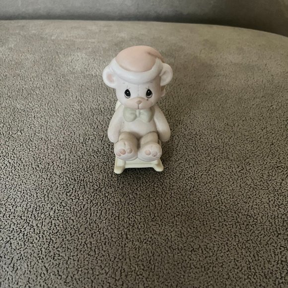 Precious Moments Santa Bear in Rocking Chair. I believe this one came out in the late 1980's. Measures approximately 3 1/4 inches tall. No cracks or chips.