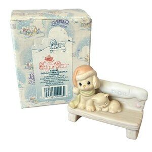 Precious Moments Sugar Town 529540 Dog & Kitten On Bench Figurine Vtg Christmas