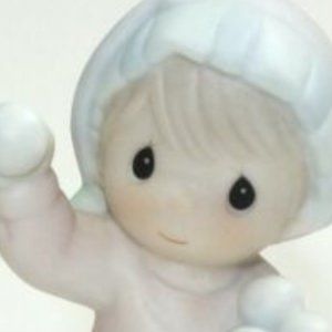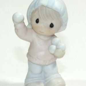 This is a vintage 1992 sugar town Sammy boy with snowballs Christmas porcelain figurine.