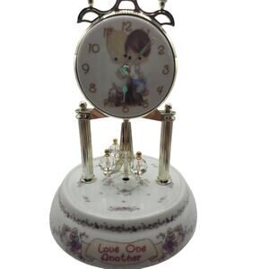 This is a rare, vintage Precious Moments anniversary clock. It's in great aesthetic condition and the clock works but the spinner doesn't spin due to a missing ball as pictured in last photo. Great addition to a collection or a sweet gift for a couple celebrating their anniversary. This clock features the classic Precious Moments style, with adorable love couple figurines and heartwarming details. Don't miss out on the opportunity to own this special piece! Battery operated and not included.