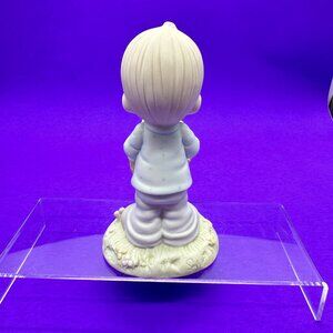 Delightfully cherubic, this Precious Moments figurine holds a basket with an equally adorable duckling. A charming piece for decorative flair.