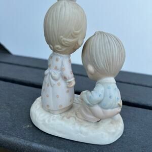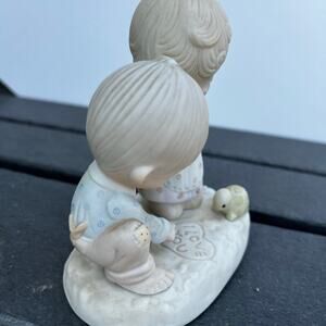 Precious moments by Enesco: “ THOU ART MINE”. Including box. *see photo paint spec on girls hair & dark spec on her cheek. Features a boy and girl with LOVE YOU written in sand, turtle watching. Sweet!