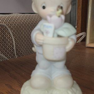 1990/ 2006 Precious Moments Glass Dome Clock. 6 piece Like New. Bride and groom music box. Couple dancing music box.