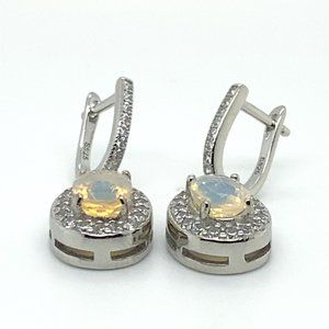 Precious Opal 2.20ct Platinum Finish Solid 925 Sterling Silver Earrings