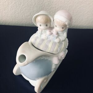 Precious Moments Christmas Holiday Couple Sleigh Teapot Pitcher